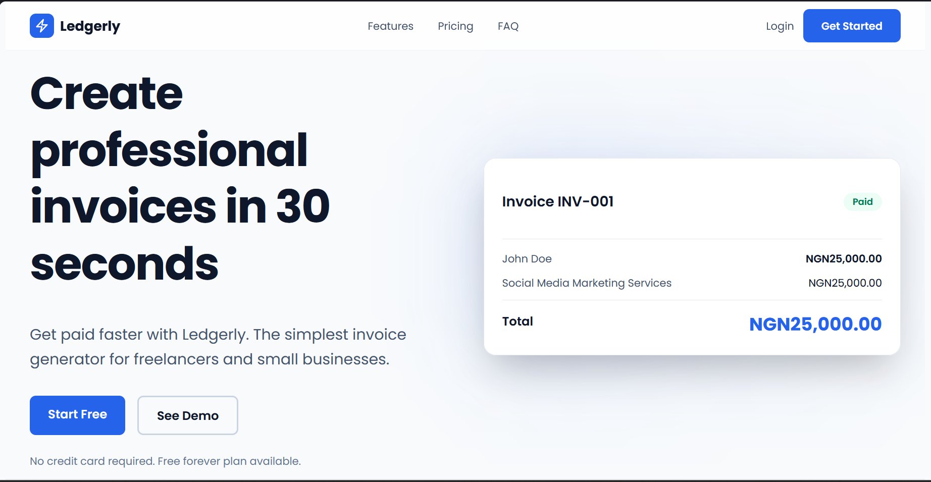 Get paid faster with Ledgerly. The simplest invoice generator for freelancers and small businesses.
